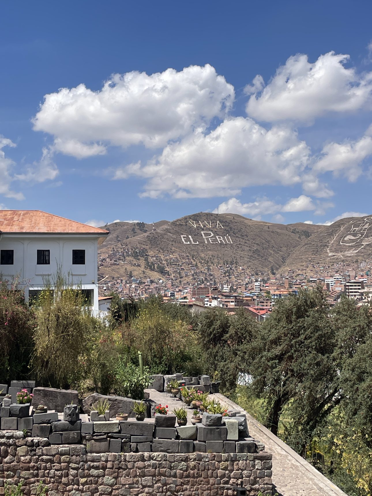 와, 근데 guided tour하는 사람들이 정말 많다. 방문객들 스캔하라고 해 놓은 QR코드는 다 먹통이라 영어로 말하는 가이드 옆에서 알짱대며 살짝 몰래 듣다.ㅎㅎㅎ 스페인 사람들이 침략을 했을 때 잉카인들의 정교함을 따라가지 못해 외벽으로 남겨두고 그 안에 본인들의 성(?)을 지었단다. 실제로 보면 잉카인들이 쌓아올린 벽과 스페니쉬들이 쌓은 벽은 차이가 많이 난다. 잉카인들은 손톱도 들어갈 틈을 주지 않았는데, 스페니쉬들이 지은 벽은 모두 시멘트 비슷한 것으로 메꾸어 져 있다. 박물관 안 광장에서 텍사스에서 혼자 여행 온 친구가 사진을 찍어주었다. 물론 우리도. 스페인 사람들이 참 터를 기막히게 잡았다는 생각이 든다. 이 곳에서 바라보는 바깥 풍경은 너무 예쁘다. 파랗게 탁 트인 하늘 아래 바로 산이 있고, 그 선을 따라 마을이 있다. 굉장히 바쁜 곳이다, 쿠스코는. 계속 감탄을 하며 바깥을 보았다. 너무 예쁘다.